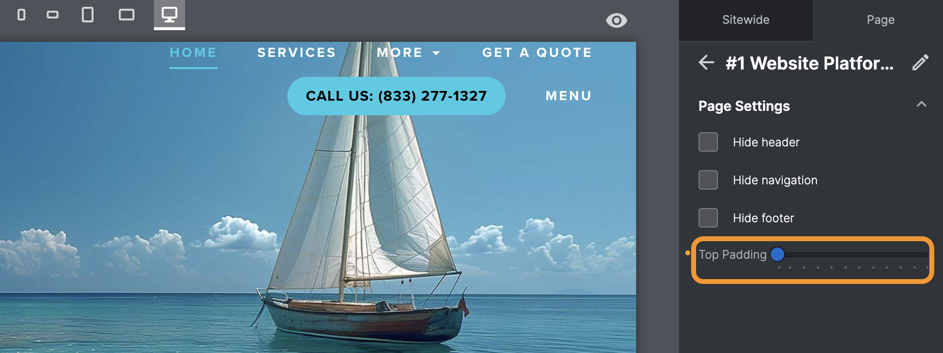 Open the Design tab at the top of your Websites app.