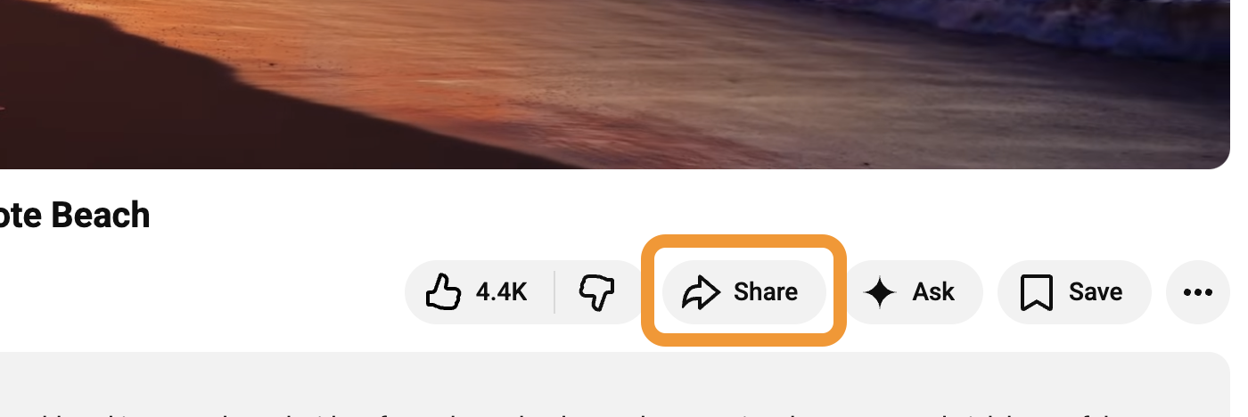 Below the video player, click the Share button.