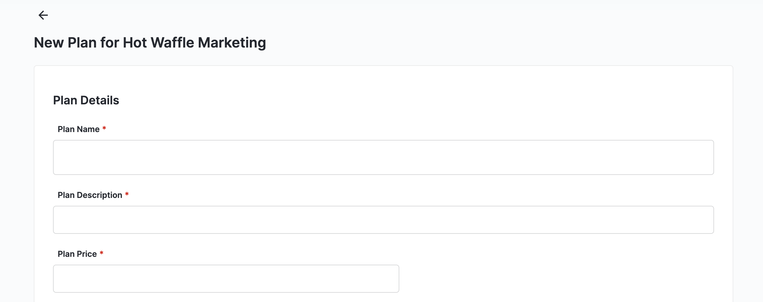 Enter the title of the plan, a description, and price.