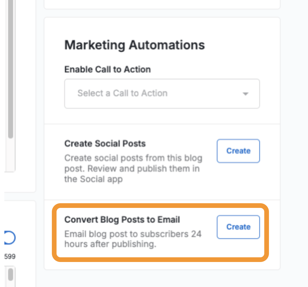 Note: This feature is available to Full Platform customers who have the Blogs Collection and an active Email app. You must also have a verified domain that you own. If you are not currently using the Email app, please contact your account manager or our sales team at (833) 203-9165.