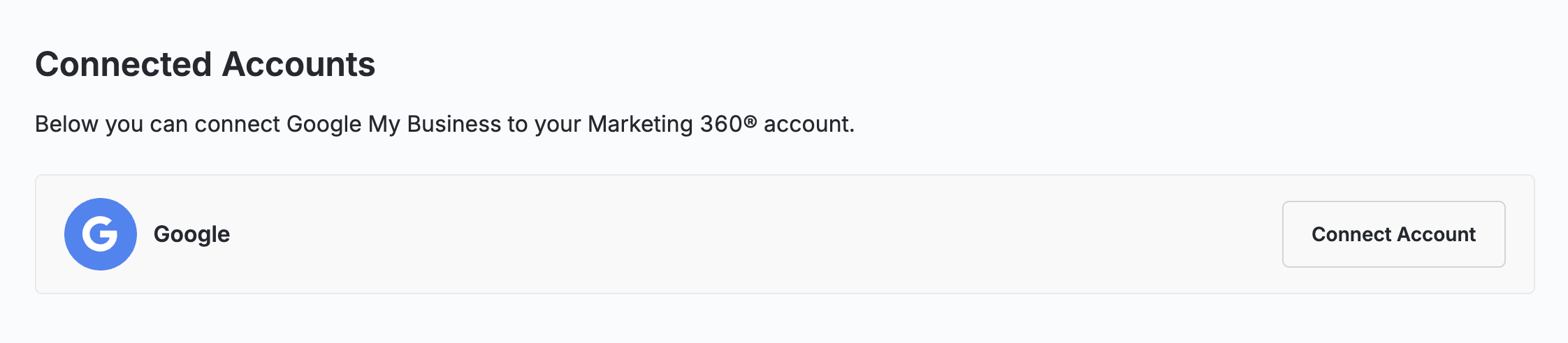 You can sync your Google Business Profile (formerly Google My Business) listing with Marketing 360® to manage your business information directly from your Locations dashboard.