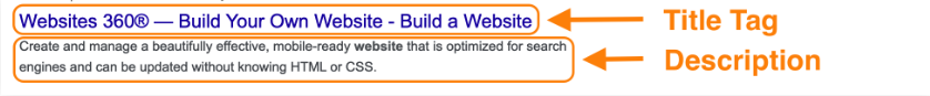 Below: An example of how the Title Tag and Meta Description appear in search results.